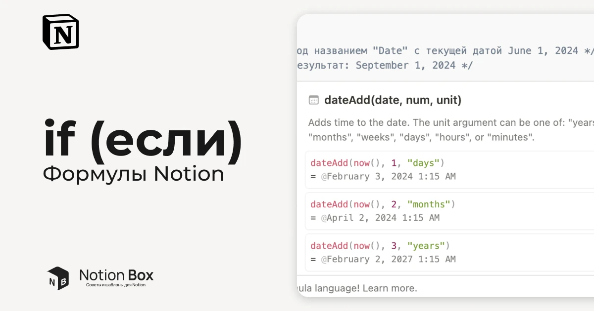 Функция if() позволяет вам писать операторы if-then (если-то) в формуле Notion.
